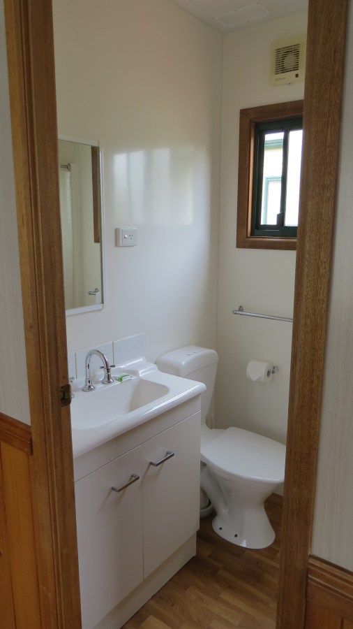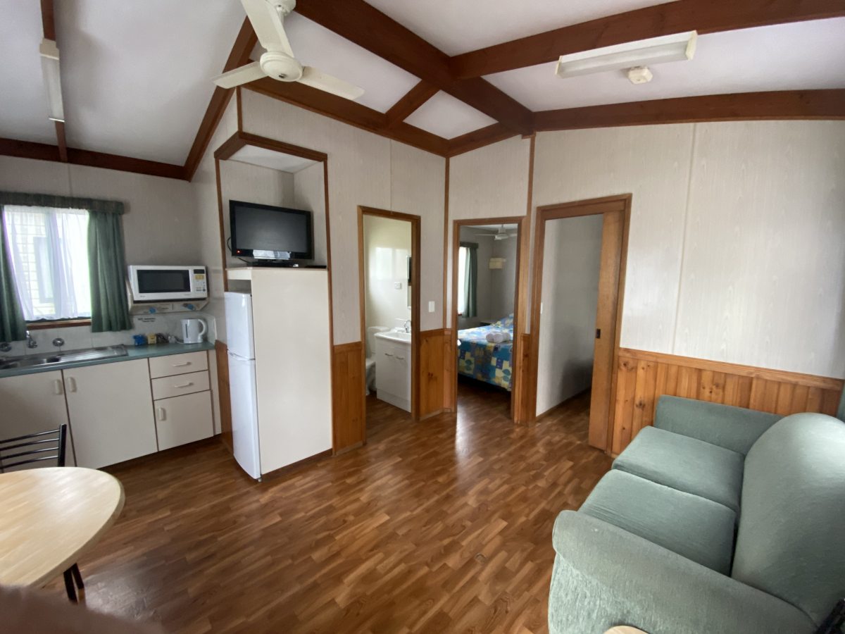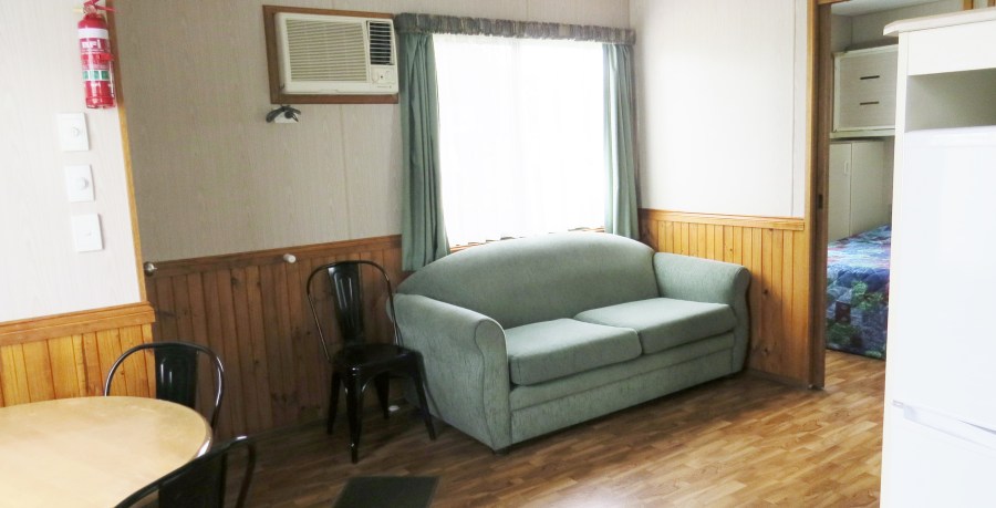 McLaren Vale Lakeside Caravan Park offers 2 bedroom cabins. One bedroom has a queen bed the second bedroom has a double bed with an overhead single bunk bed. All linen is included. The cabin includes bathroom facilities with shower, vanity unit and toilet, full kitchen, lounge, TV, split system reverse cycle air conditioner. Complimentary tea and coffee to start your holiday.